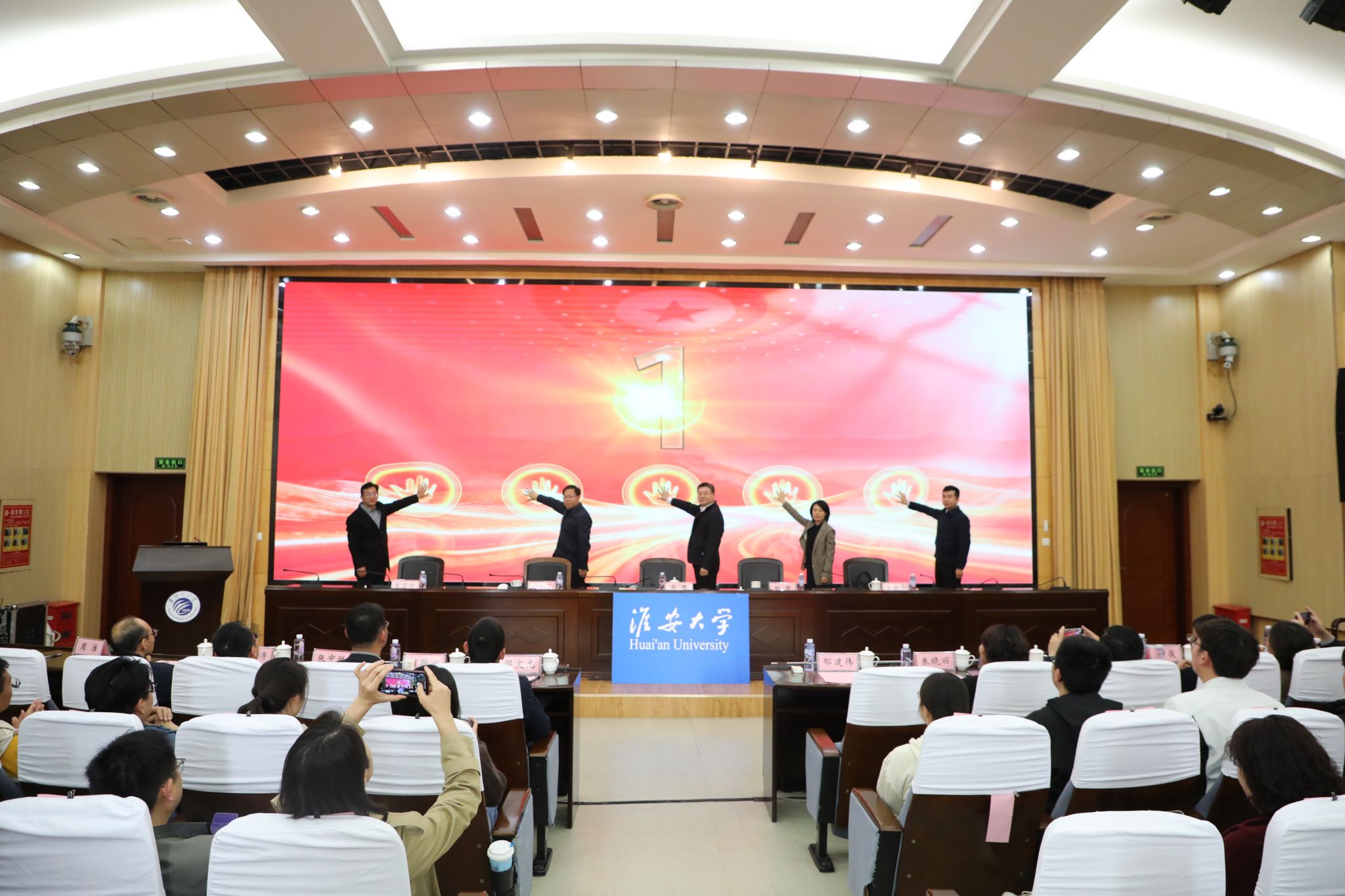 在全体与会人员共同见证下,与会领导共同启动淮安大学首届(第27届“知不足”)读书节。