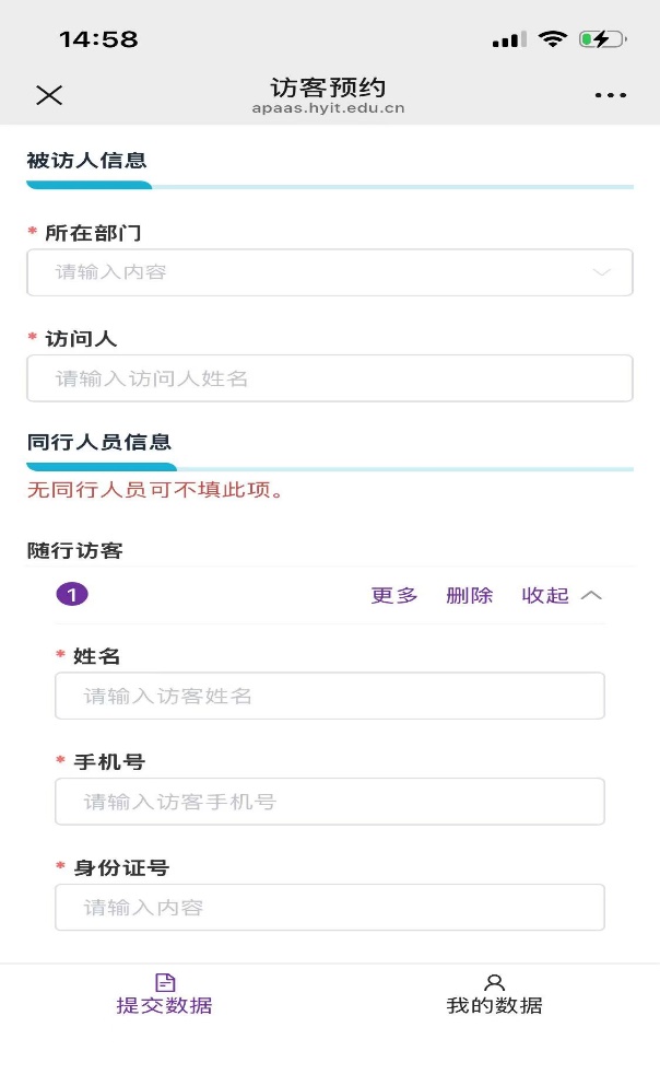 其中,被访问人信息:所在部门填写:“图书馆”,访问人填写:“张朝阳”