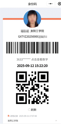 (2) 进入配置智盟卡身份认证设备的高校馆,用户需打开智盟卡身份码进行扫码认证,认证设备将语音播报认证结果。