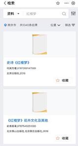 (1) 小程序首页顶端设置检索栏,可查找所需图书,支持高级检索和结果筛选,用户可以收藏图书,在“我的”-“我的收藏”页面查看。